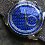 three-dimensional pattern has been created with renowned watch designer Eric Giroud. Like only soft metals like brass are able to be embossed, a titanium dial can