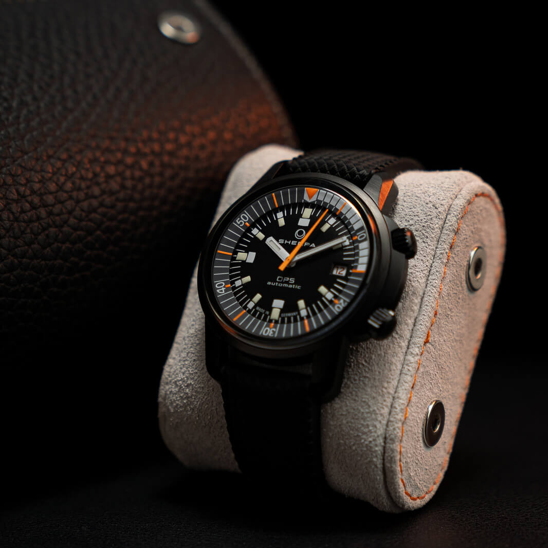 As Sherpa are bringing back the most legendary models of the old Sherpa series of watches from the 1960s, it’s important to update the โEPSA-STOPโ or โbayonet compressorโ system. It is improved by using modern sealing materials and higher precision manufacturing, as well as a new design. This allows to only introduce the case back in one orientation and guarantees a perfectly aligned EPSA logo (the iconic diver helmet!) on the case back. ย This new design tightens the case back to the sealing in a way that everyday actions can be performed easily and safely, while tightening the sealing further when exposing the watch to higher pressure from outside. In other words: the Ultradive and OPS will go as far (or deep) as you dare to go, without succumbing under pressure.